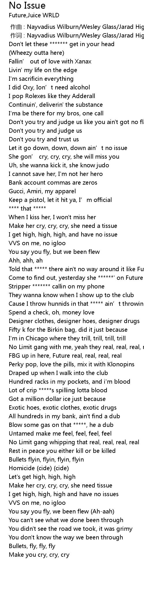 | [01:04.77] | Told that ***** there ain't no way around it like Future |