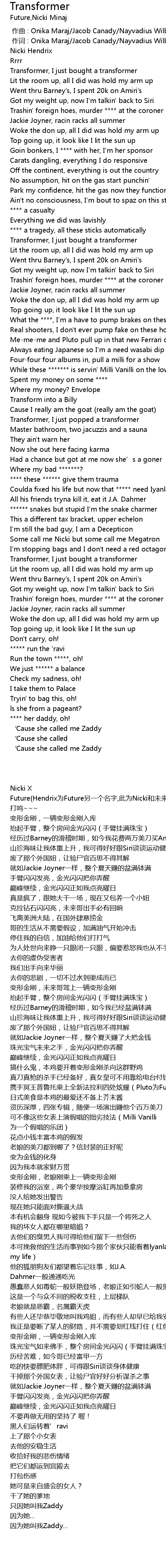 | [00:08.29] | Nicki X Future(Hendrix为Future另一个名字,此为Nicki和未来巡演的tag) |