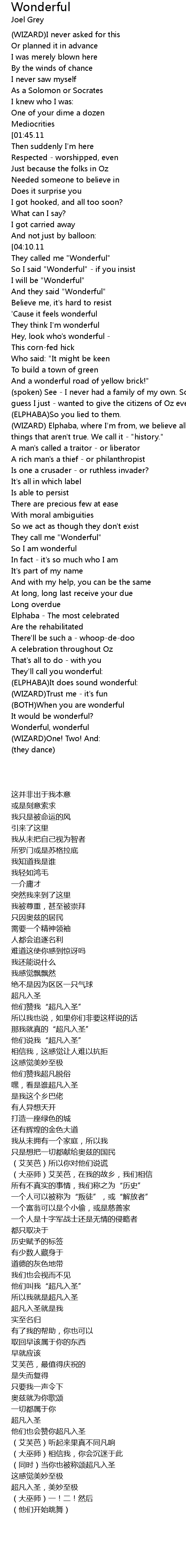 (WIZARD) Elphaba, where I'm from, we believe all sorts of |