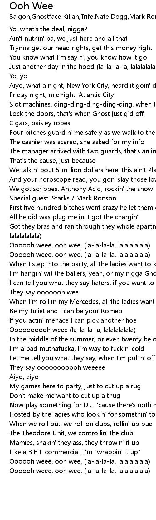 Oooooh weee, ooh wee, (la-la-la-la, lalalalalala) |