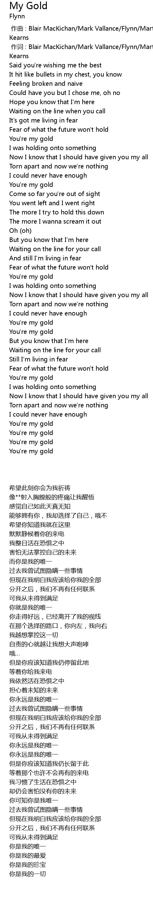 | [01:32.18] | You're my gold |