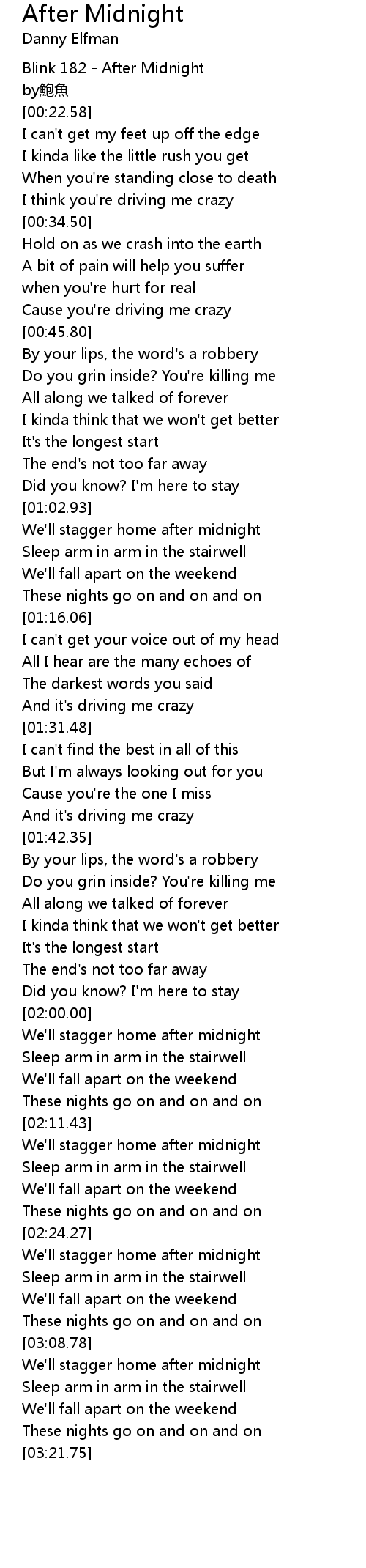 | [00:11.96] | Blink 182 After Midnight |