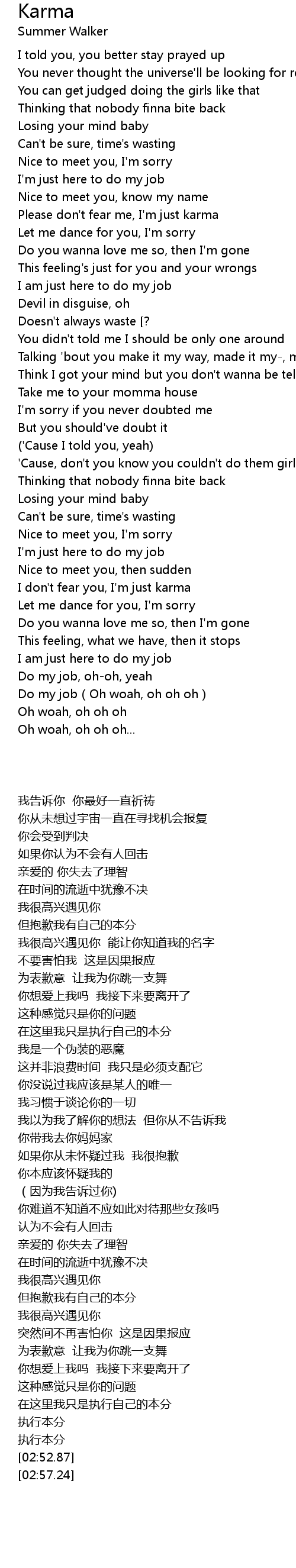 | [00:45.93] | Please don't fear me, I'm just karma |