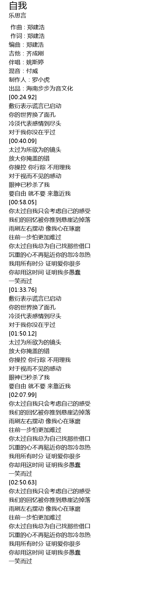 | [02:24.41] | ni tai guo zi wo zong wei zi ji zhao nei xie jie kou |