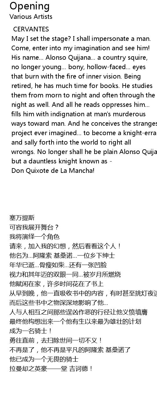 wrongs. No longer shall he be plain Alonso Quijana... |