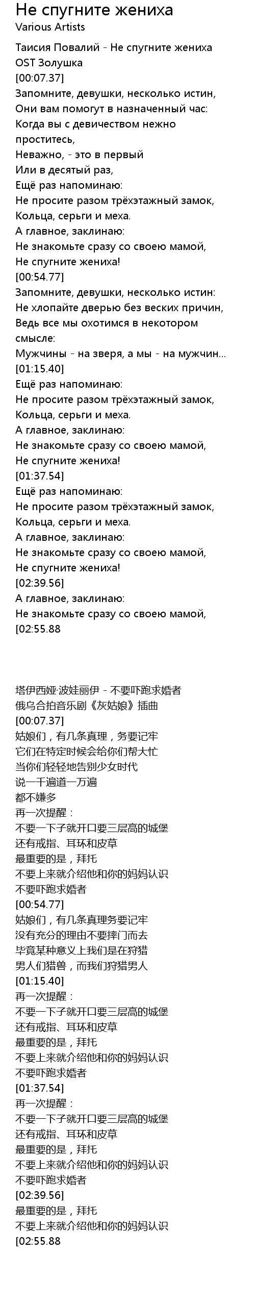 | [00:00.00] | Таисия Повалий - Не спугните жениха |