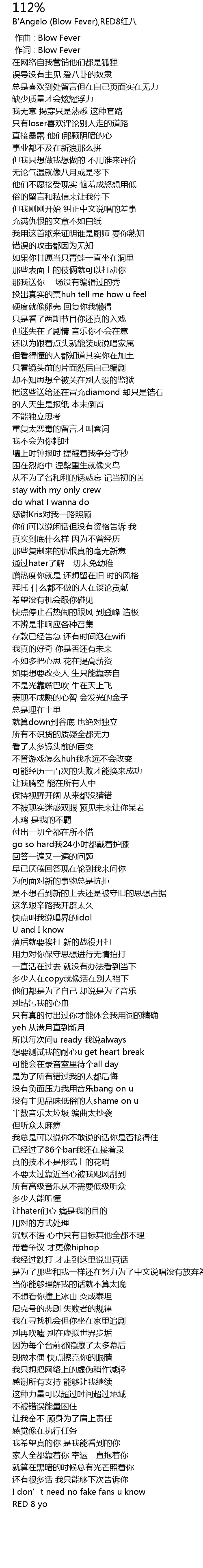 | [00:01.000] | 作词 : Blow Fever |