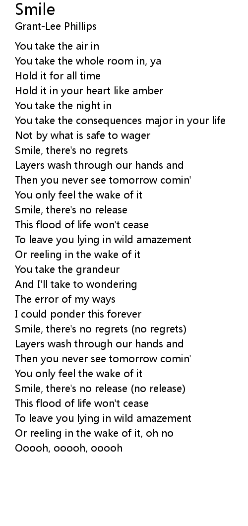 Smile, there's no regrets (no regrets) |