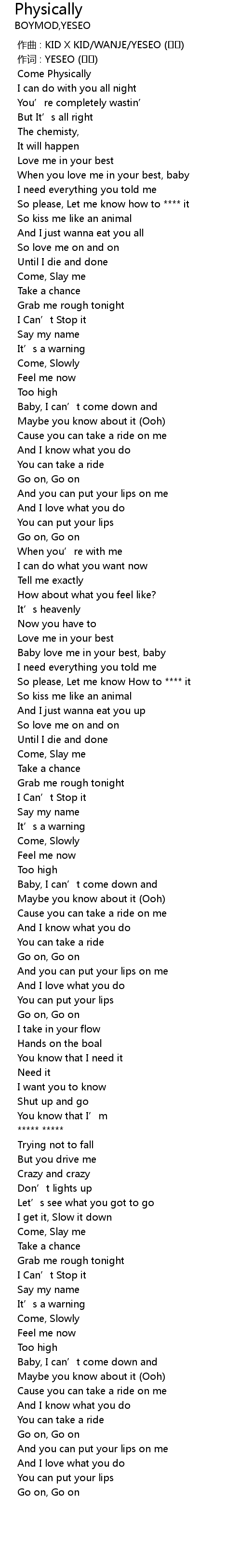 | [00:21.140] | Come Physically |