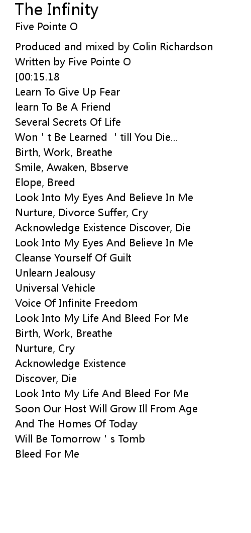| [00:08.11] | Written by Five Pointe O |