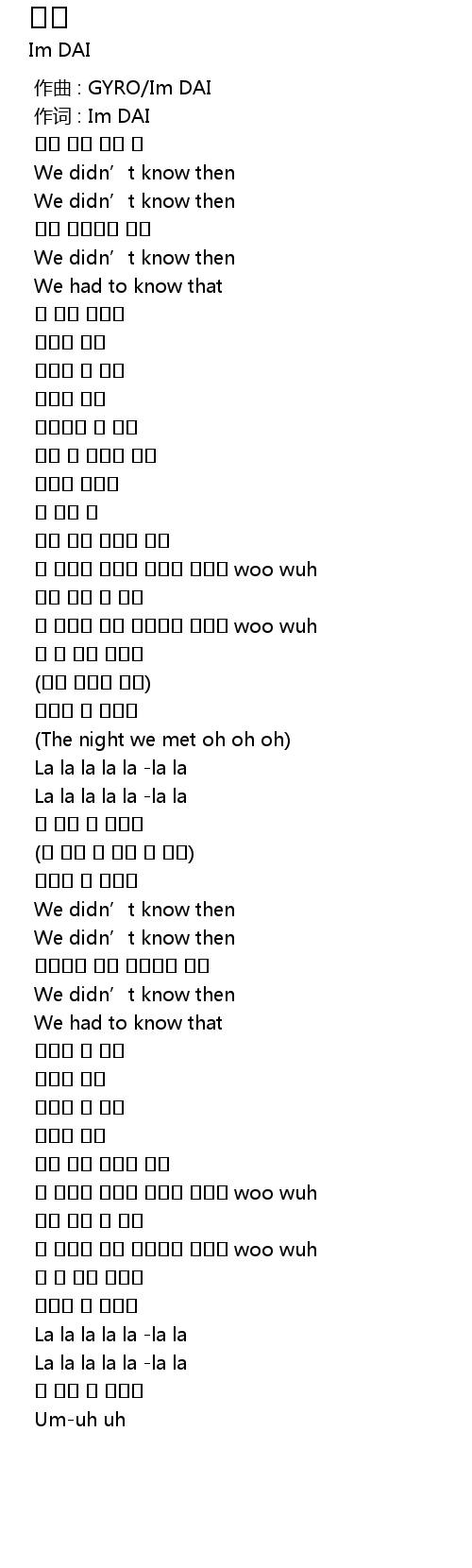 | [00:01.000] | 作词 : Im DAI |