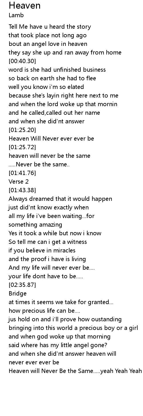 [03:24.72] Heaven will Never Be the Same.....yeah Yeah Yeah