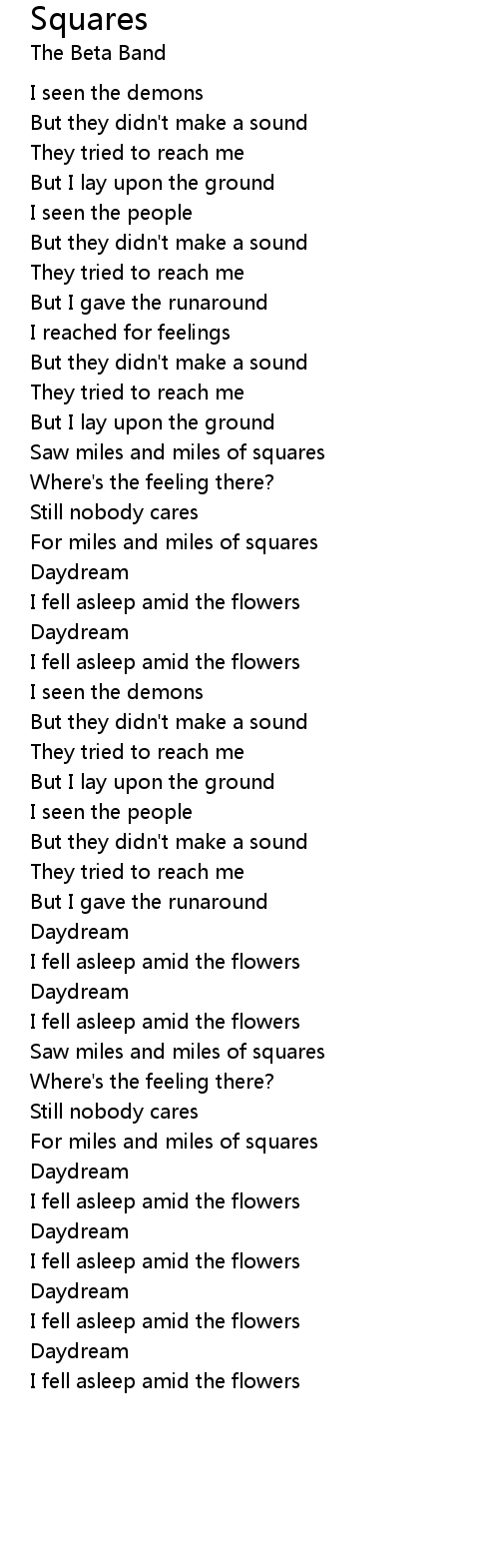 Saw miles and miles of squares |