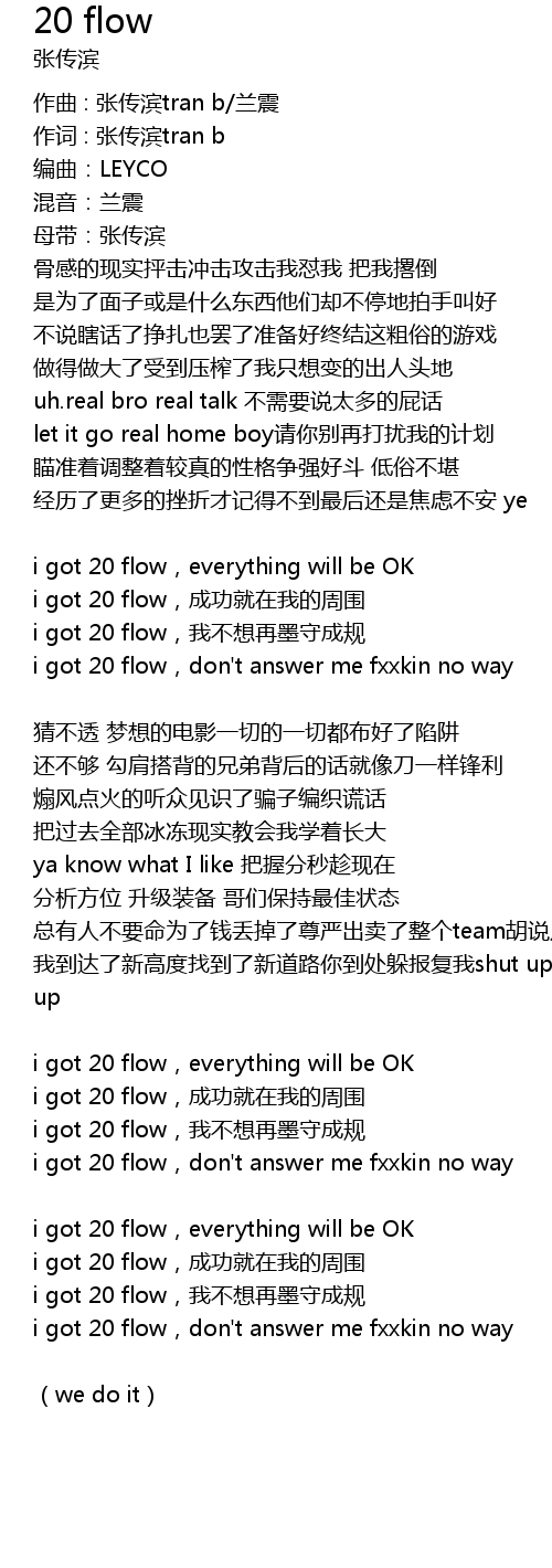 | [01:52] | i got 20 flow,我不想再墨守成规 |