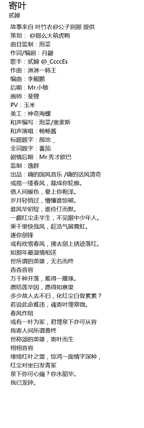 | [00:02.507] | 故事来自 叶竹衣@公子刹那 提供 |