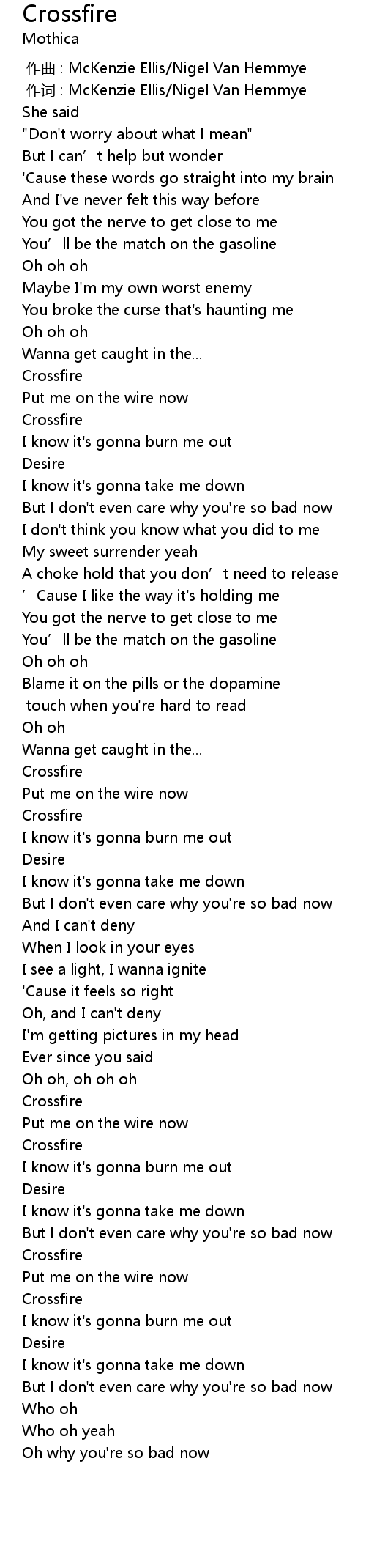 | [01:52.79] | Crossfire |