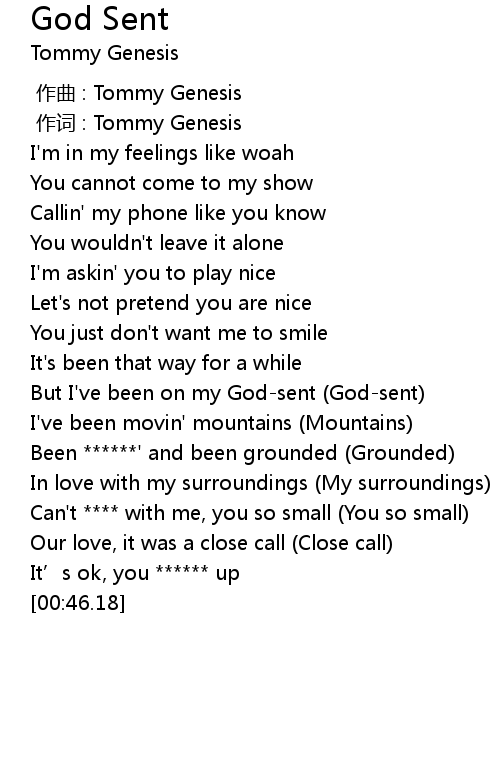 | [00:28.98] | But I' ve been on my Godsent Godsent |
