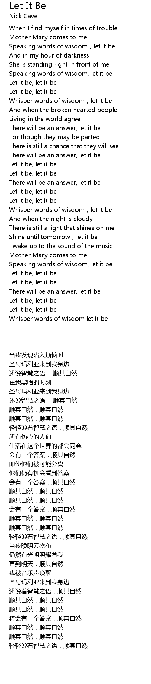 | [00:50.720] | Whisper words of wisdom,let it be |