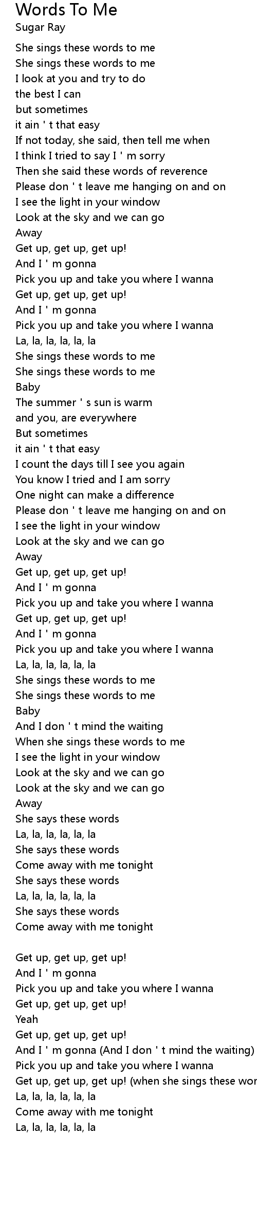 | Get up, get up, get up! when she sings these words to me | |