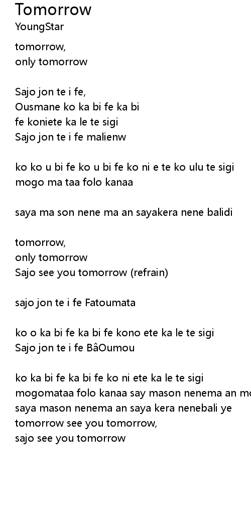 | Sajo see you tomorrow refrain | |