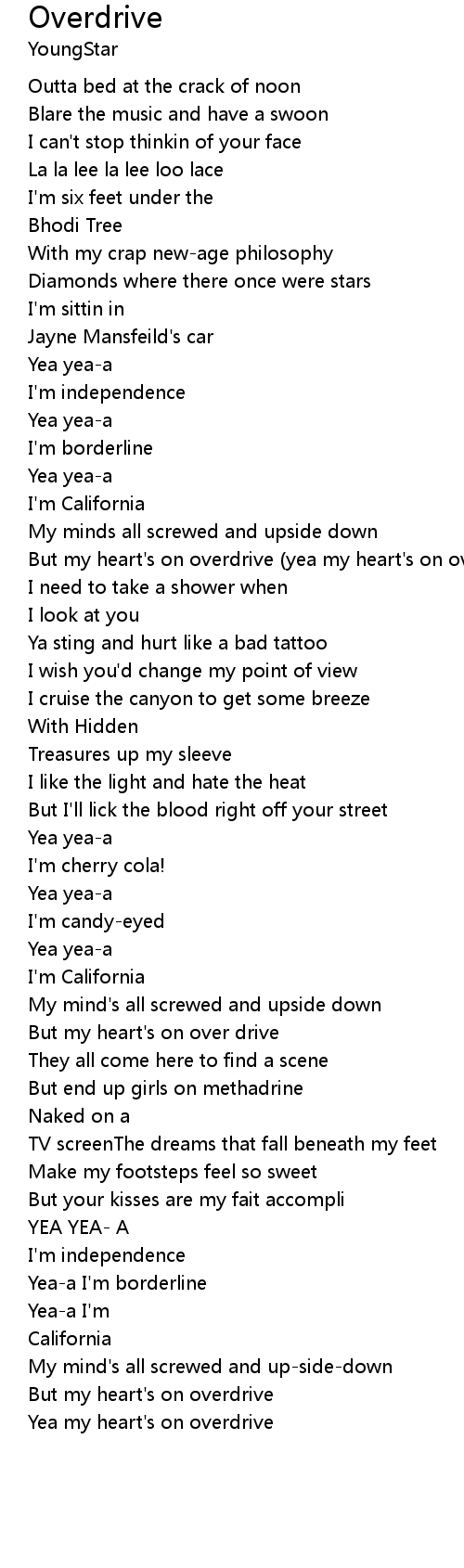 | But my heart's on overdrive (yea my heart's on overdrive) | |