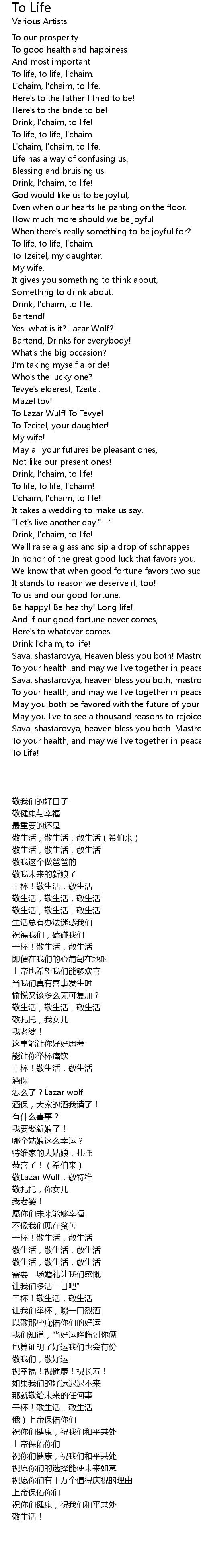 | [00:12.370] | L' chaim, l' chaim, to life. |