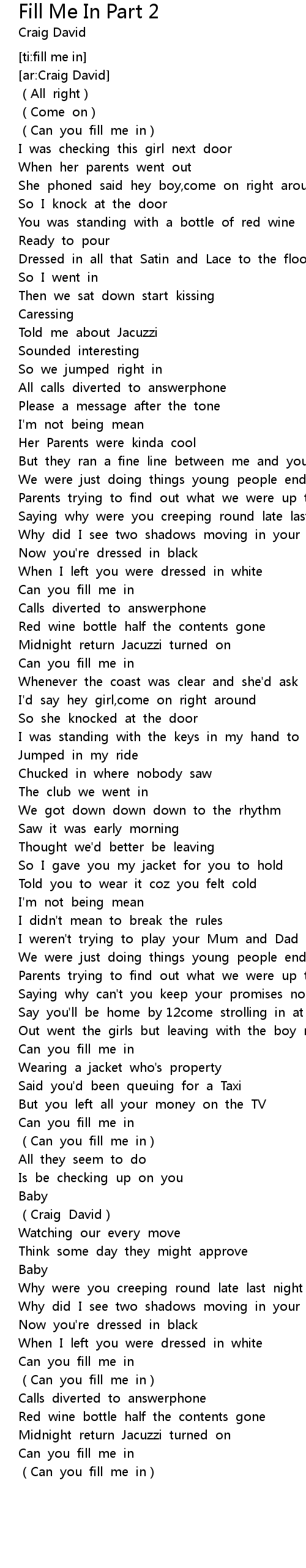 | 歌曲 | Fill Me In Part 2 |