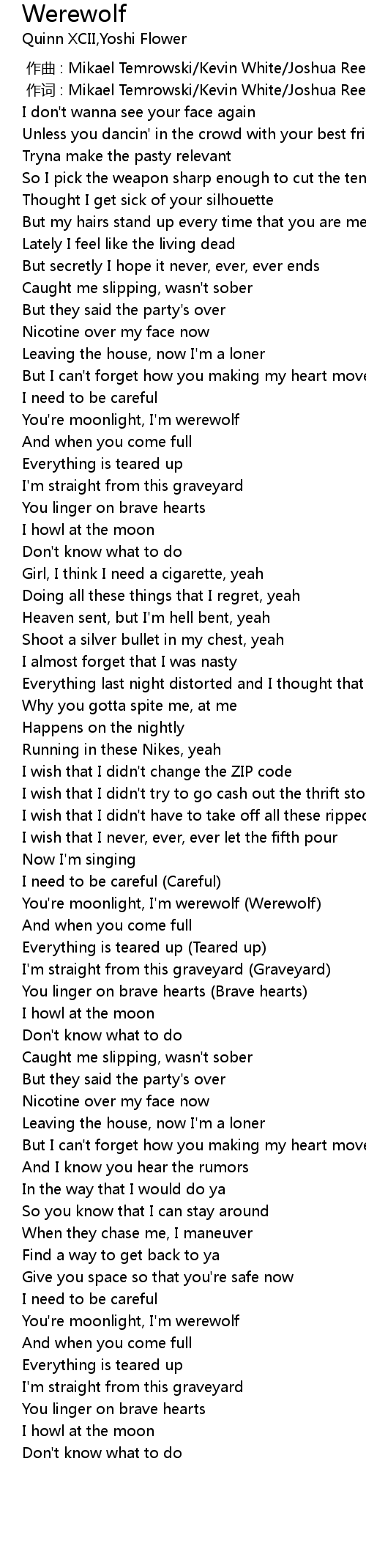 | [01:49.89] | You're moonlight, I'm werewolf (Werewolf) |