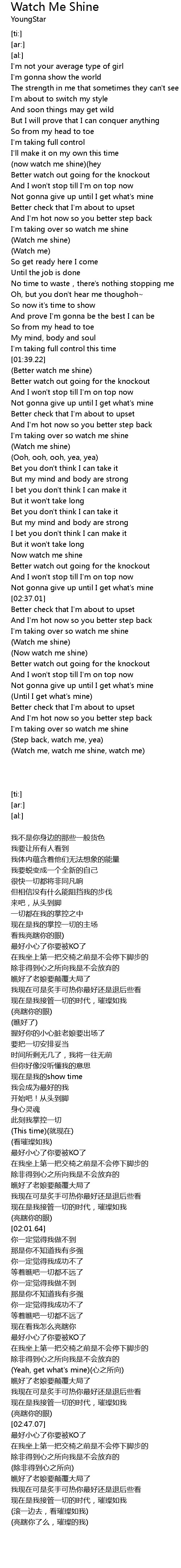 | [03:09.55] | Watch me, watch me shine, watch me |