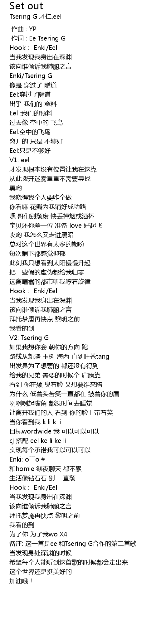 | [02:57.065] | 备注: 这一首是eel和Tsering G合作的第二首歌 |