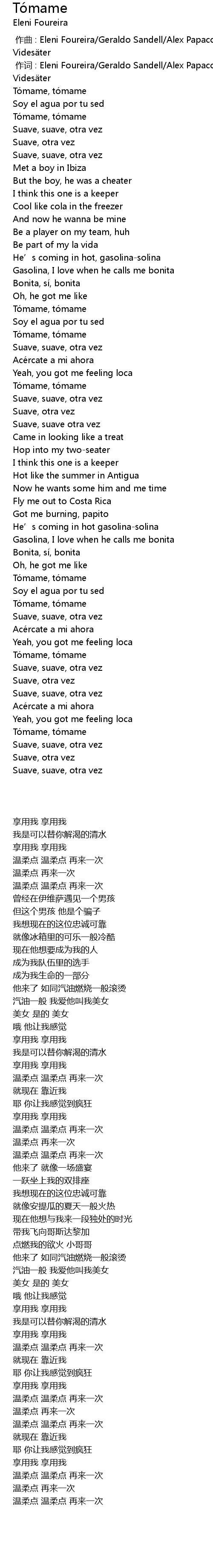| [00:00.008] | 作词 : Eleni Foureira/Geraldo Sandell/Alex Papaconstantinou/Markus Videsäter |