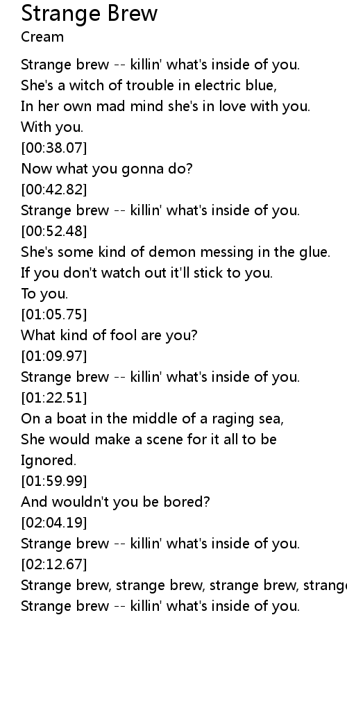 | [02:16.75] | Strange brew, strange brew, strange brew, strange brew. |