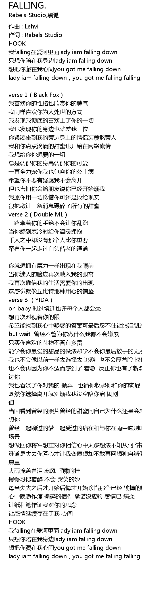 | wǒ falling zài ài hé lǐ miàn lady iam falling down | |