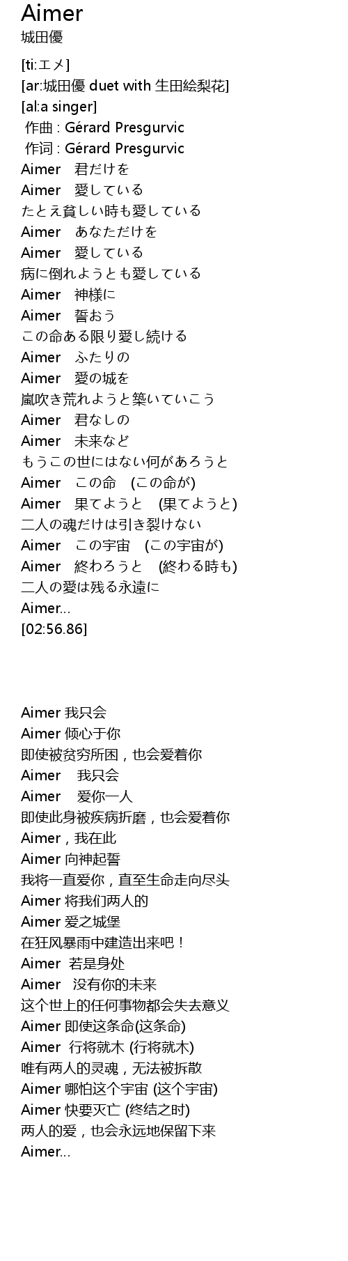 | [00:54.27] | Aimer ài |