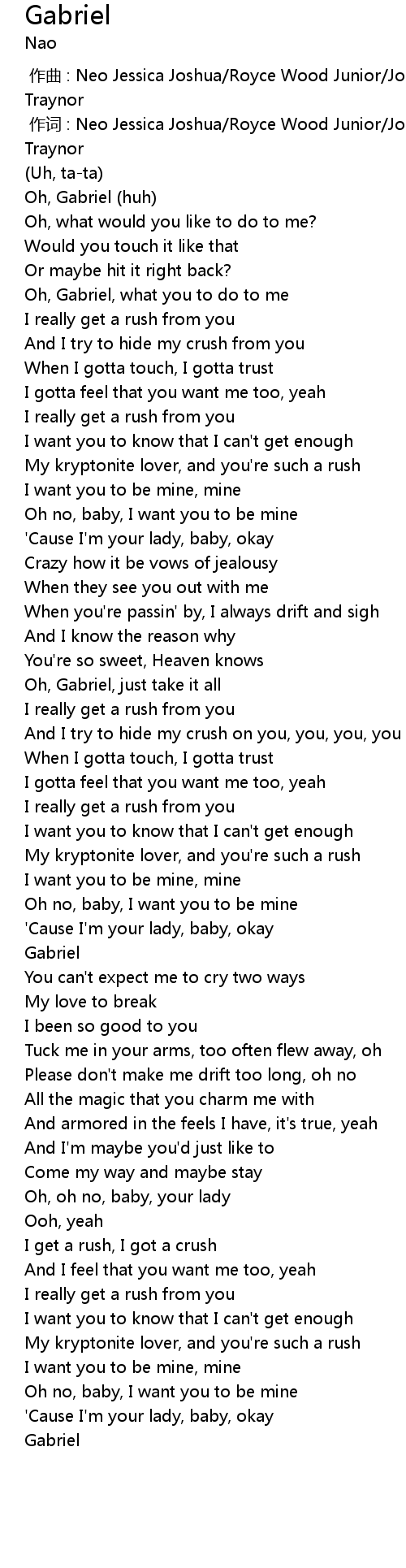 | [00:24.98] | Oh, Gabriel, what you to do to me |
