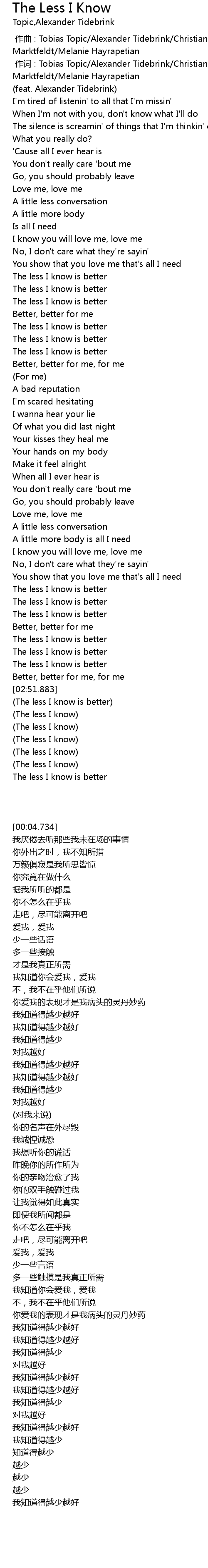 | 歌曲 | The Less I Know |