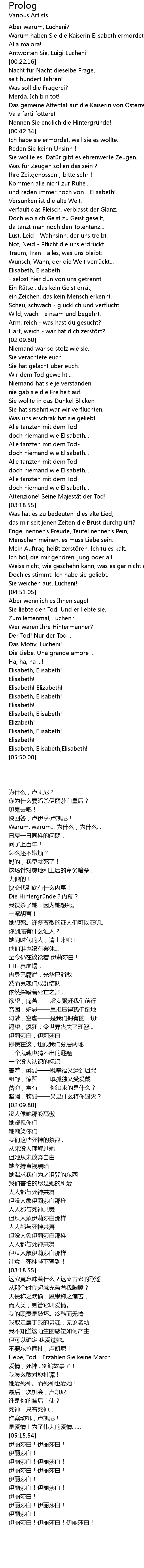 | [00:12.40] | Warum haben Sie die Kaiserin Elisabeth ermordet? |