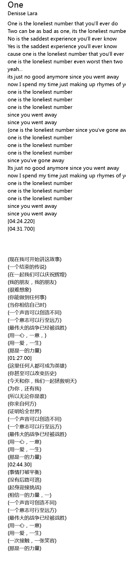 | [04:00.900] | one is the loneliest number |