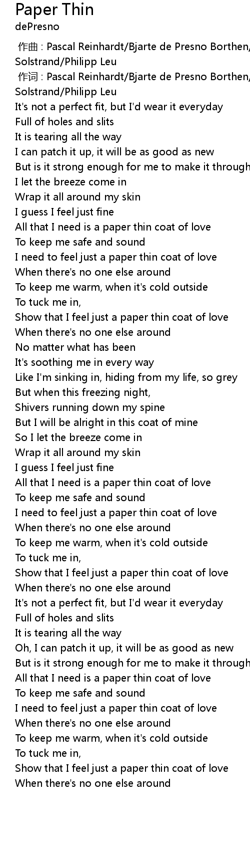 | [01:51.62] | All that I need is a paper thin coat of love |
