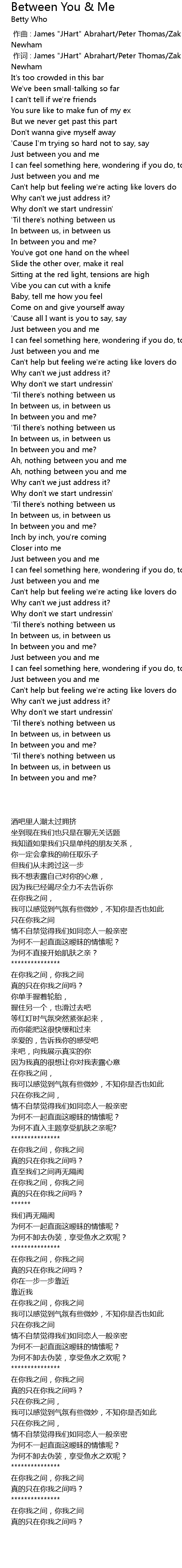 | 歌曲 | Between You & Me |