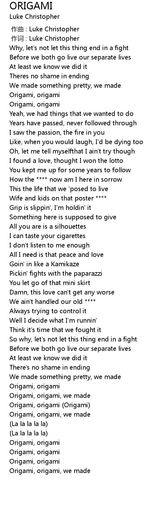| [02:23.45] | Origami, origami |