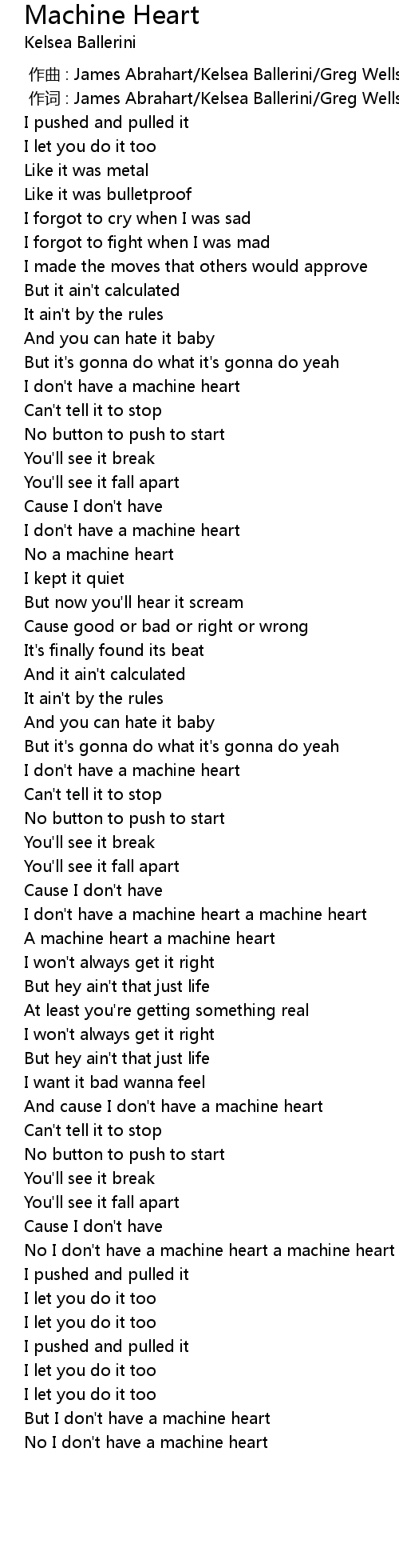 | [01:29.41] | I don' t have a machine heart a machine heart |