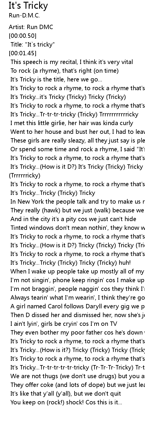 [00:13.17] It's Tricky...it's Tricky (Tricky) Tricky (Tricky)
