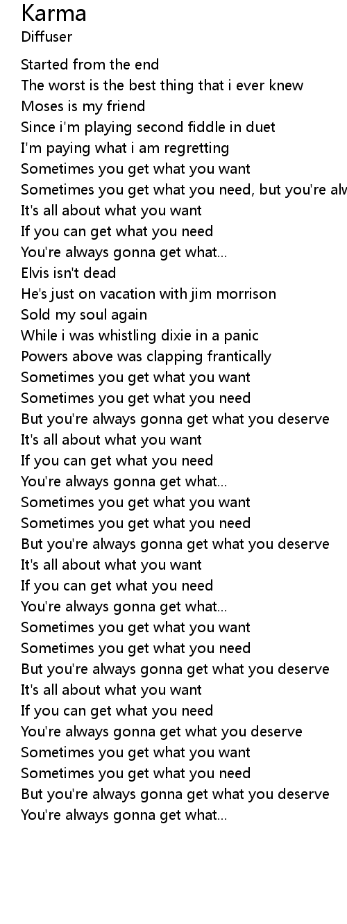 Sometimes you get what you need, but you're always gonna get what you deserve |