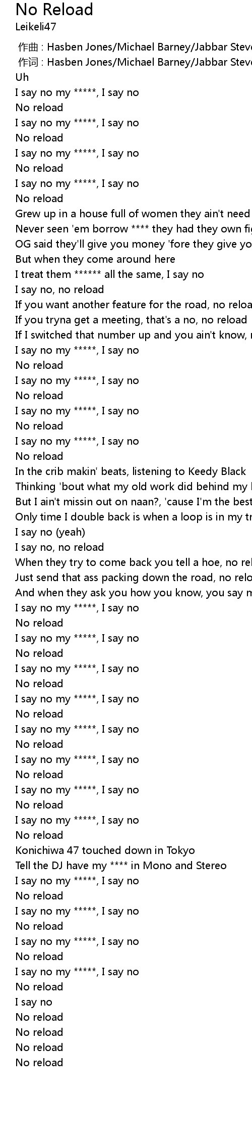 | [00:49.40] | If you tryna get a meeting, that' s a no, no reload |