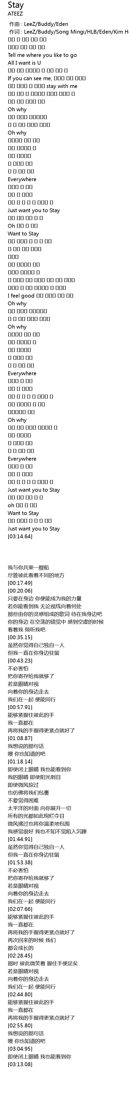 | [00:01.000] | 作词 : LeeZ/Buddy/Song Mingi/HLB/Eden/Kim Hongjoong |