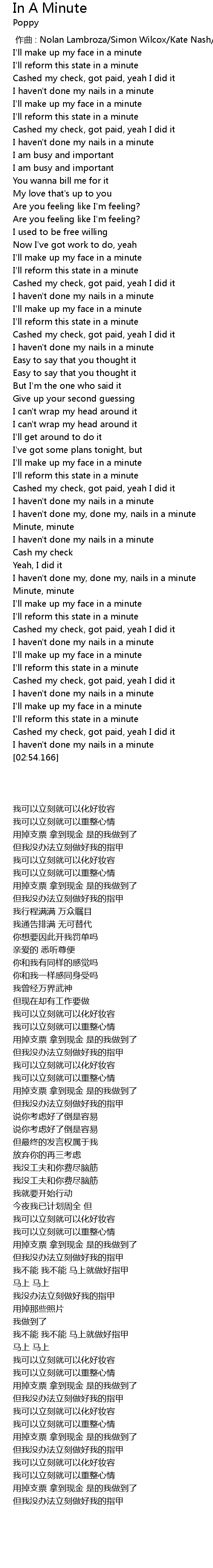 | [02:14.221] | I haven' t done my, done my, nails in a minute |