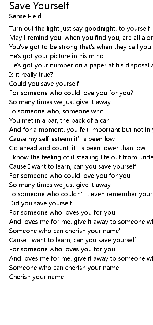 | Cause I want to learn, can you save yourself | |