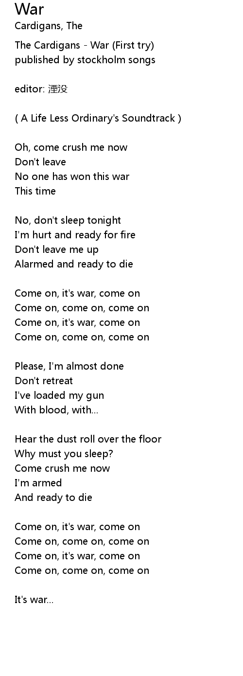 | Come on, it's war, come on | |