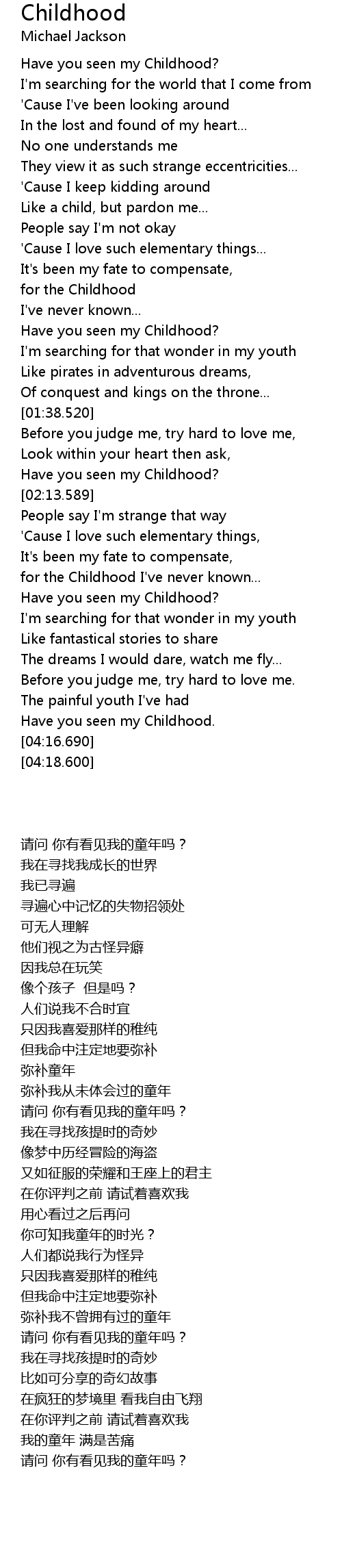 | [03:13.890] | Have you seen my Childhood? |